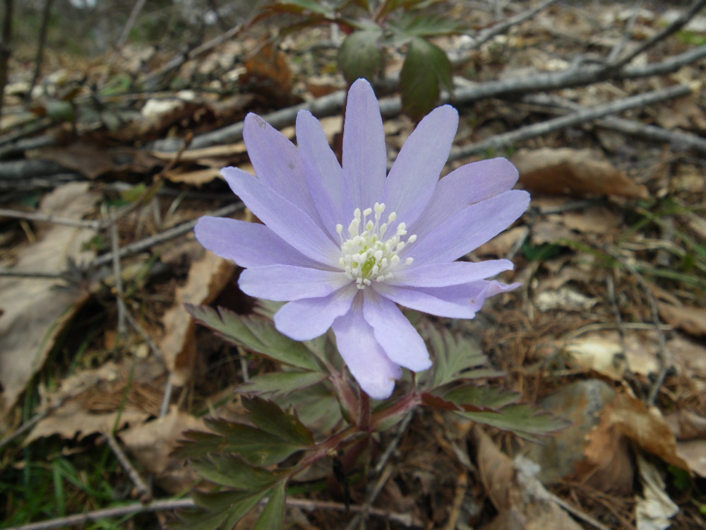 春遅い池の平に雪割草が咲きだしています。