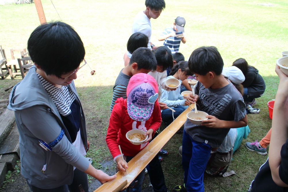 涼を求めて流しそうめんができます。 われさきにと食べてたら、 おなか一杯な事を忘れちゃう・・そうです センターへお越しの…